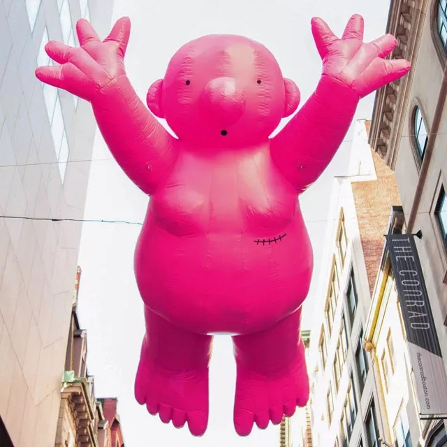 Mignonisme (Cuteism) is a poetically off-kilter movement to embrace the aesthetics of “cuteness” in our physical and psychological environments. Philippe Katerine presents a series of inflatable sculptures in public spaces, all featuring “Monsieur Rose” (Mr. Pink). The monumental icon of Mignonisme can be found perched on rooftops around the city. These characters transform the streets into playful places and our daily travels into delightful, colorful journeys.